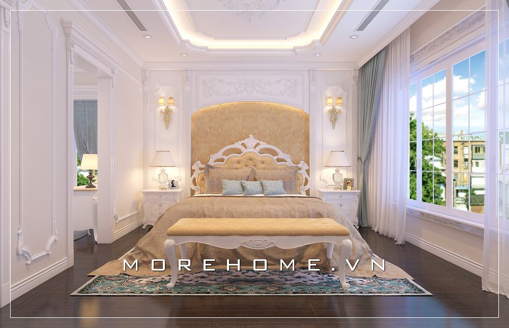 Mẫu giường ngủ bọc nỉ đẹp sang trọng mang phong cách tân cổ điển nhẹ nhàng, ấn tượng và mang sức hút lớn thể hiện được đẳng cấp của chủ nhân ngôi nhà