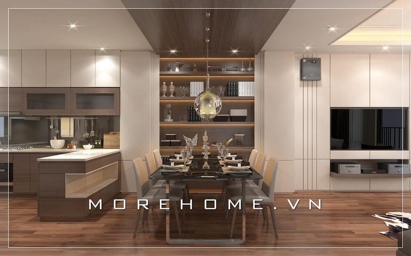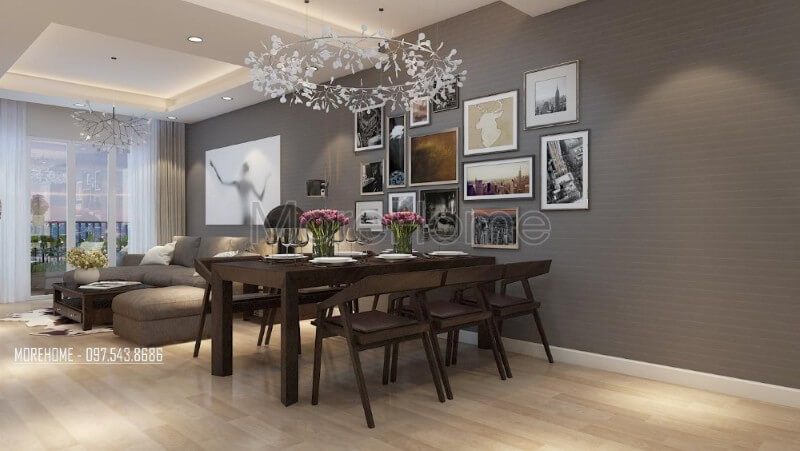 Thiết kế nội thất phòng ăn chung cư phong cách hiện đại, nhẹ nhàng với cách tráng trí ấn tượng