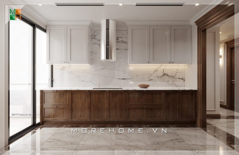 Thiết kế nội thất phòng bếp biệt thự tân cổ điển sang trọng và tiện nghi