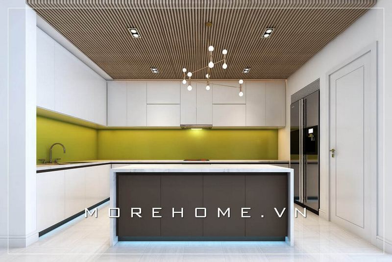 Thiết kế nội thất bếp đẹp hiện đại với tông trắng chủ đạo