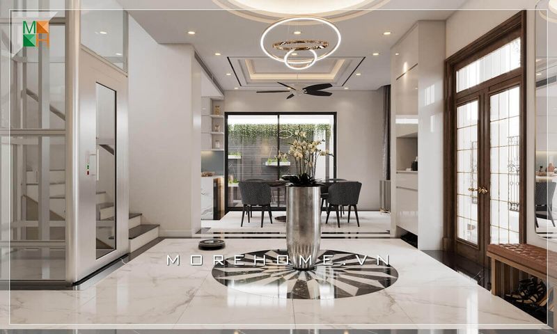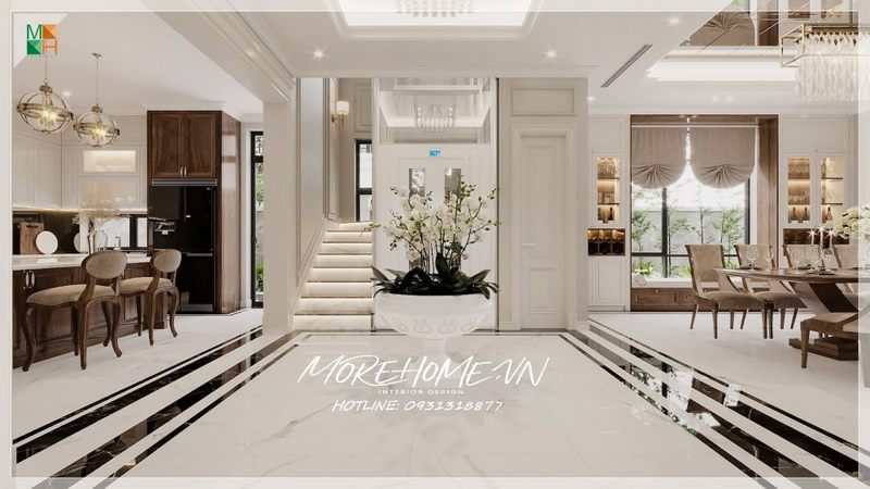 Mẫu thiết kế sảnh hành lang công trình biệt thự Ocean Park được KTS Morehome chăm chút từng không gian, với sự bố trí nội thất hài hòa hợp lý, mang đến trái nghiệm sống hoàn hảo cho khách hàng
