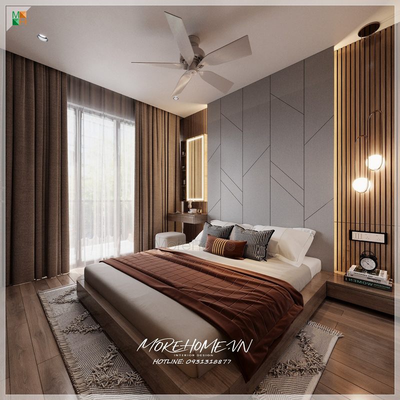 Thiết kế giường ngủ ông bà ấn tượng, sang trọng với tone màu nhã nhặn, trung tính