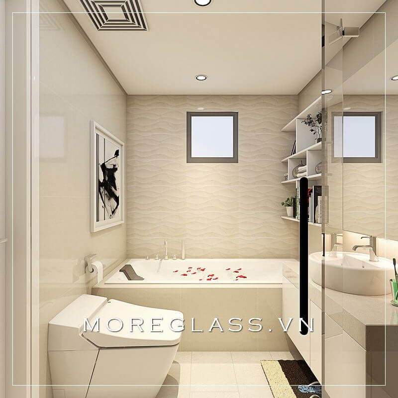 Với lối thiết kế nhẹ nhàng, đơn giản mà không quá tỉ mỉ vào từng chi tiết nhỏ, không gian phòng tắm chung cư hiện đại mà vẫn đảm bảo tính tiện nghi cho người sử dụng