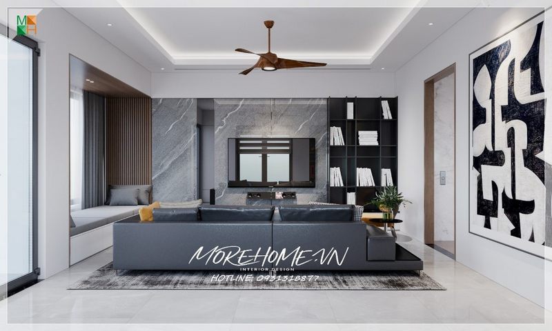 Ghế sofa vuông cạnh có kiểu dáng hiện đại sẽ là một trong những lựa chọn tốt nhất để tạo nên sự sang trọng cho phòng khách của căn hộ chung cư.
