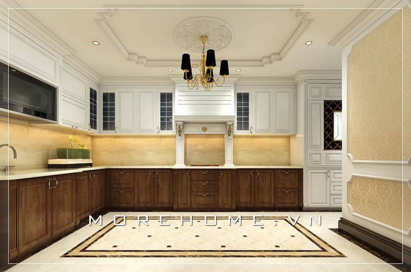 Thiết kế nội thất cho phòng bếp biệt thự tân cổ điển để tạo ra sự sang trọng và đẳng cấp.