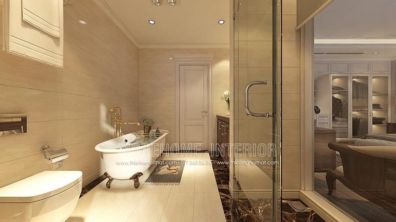 Phòng tắm thiết kế đặc biệt sẽ mang lại không gian sang trọng, hiện đại, có tính thẩm mỹ cao và nét riêng biệt của gia chủ với bồn tắm cao cấp và tông màu sáng.